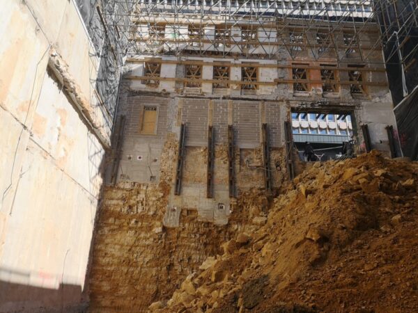 We’ve reached level -3 on the Amalia building site. The beautiful old façade of Nr. 19-21 on rue des Bains has been secured in place...