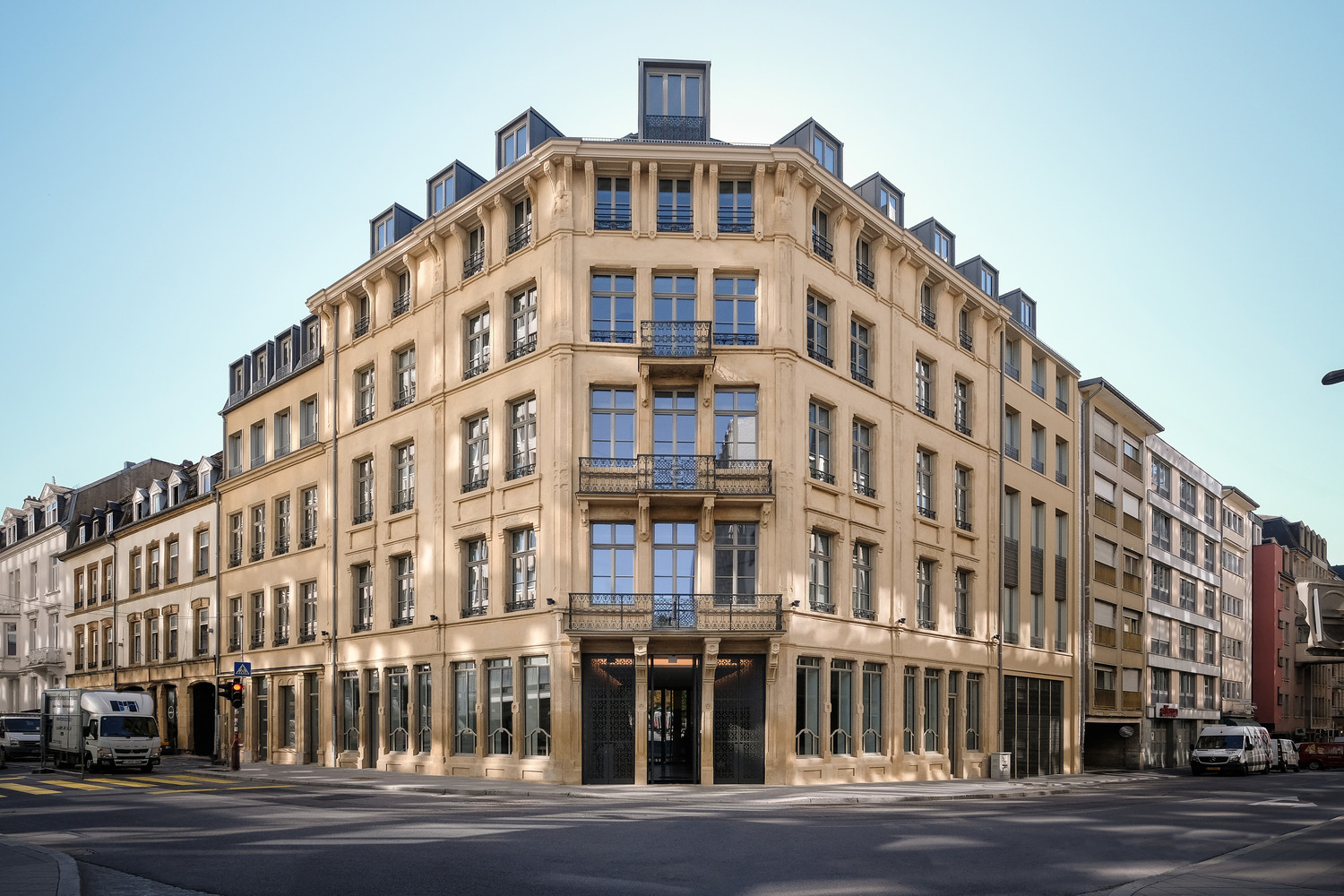 The historical 60-windowed façade gave this iconic building in the heart of Luxembourg City Center its name, “Fënsterschlass”, or “Window Castle”. Inside this magnificent piece of art, the renowned architects Christian Bauer & Associés have designed unique living, working and commercial spaces, mixing historical character with a contemporary look and modern comfort. The balconies’ and windows’ delicate ironwork as well as the imposing entrance doors evoke the splendor of the building’s past.