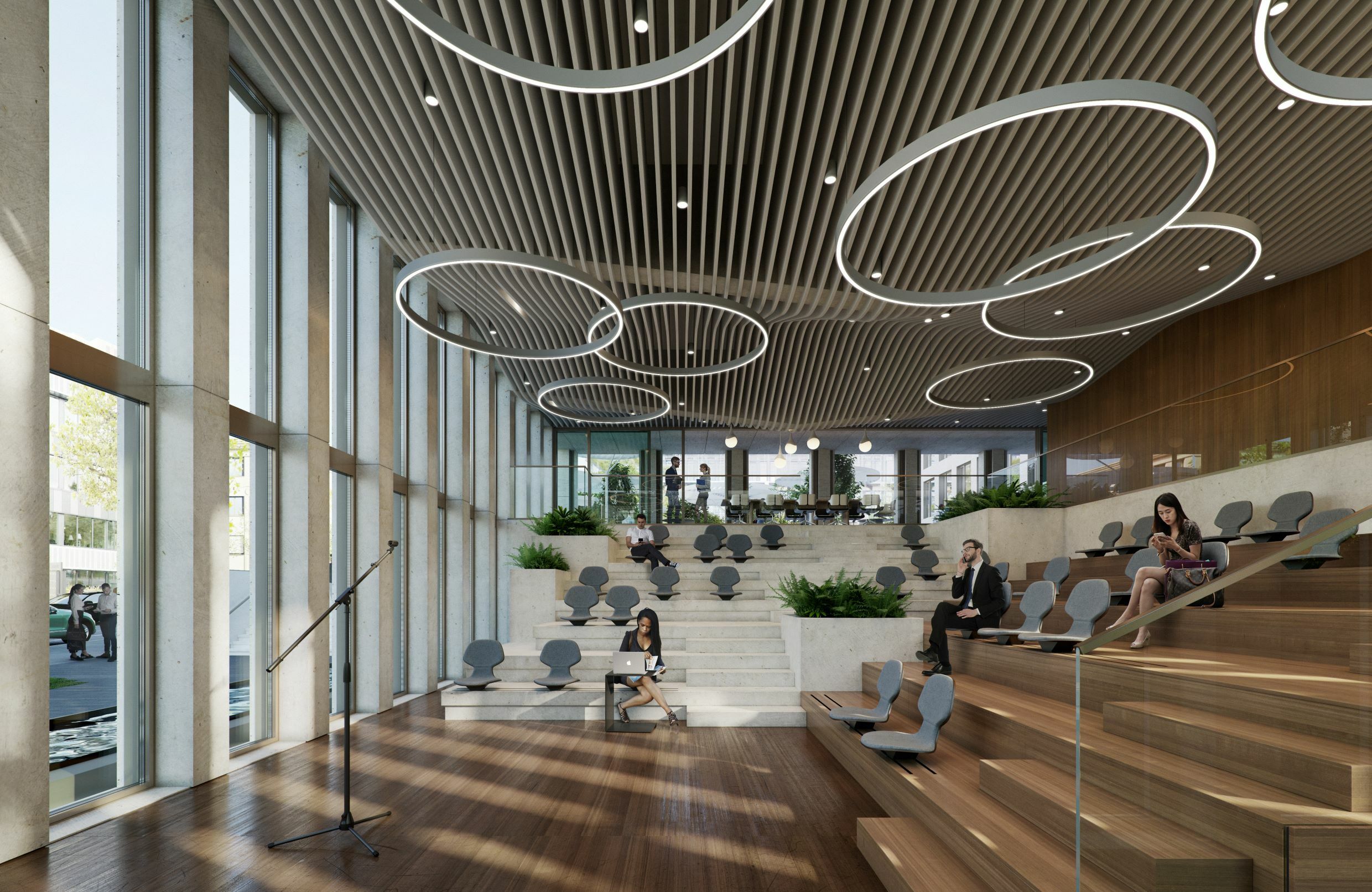 Outdoors, 550 square meters of designer landscaped outdoor gardens are designed as work spaces but can be used as relaxing and healthy bubbles for occupants and visitors alike.